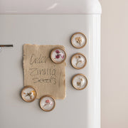 1" Round Resin Convex Magnets on Metal Card w/ Botanicals, Gold Finish & Natural, Set of 6