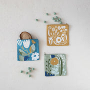 Creative Co-Op 7" Cotton Printed Zip Food Pouch w/ Flowers & Interior Coating