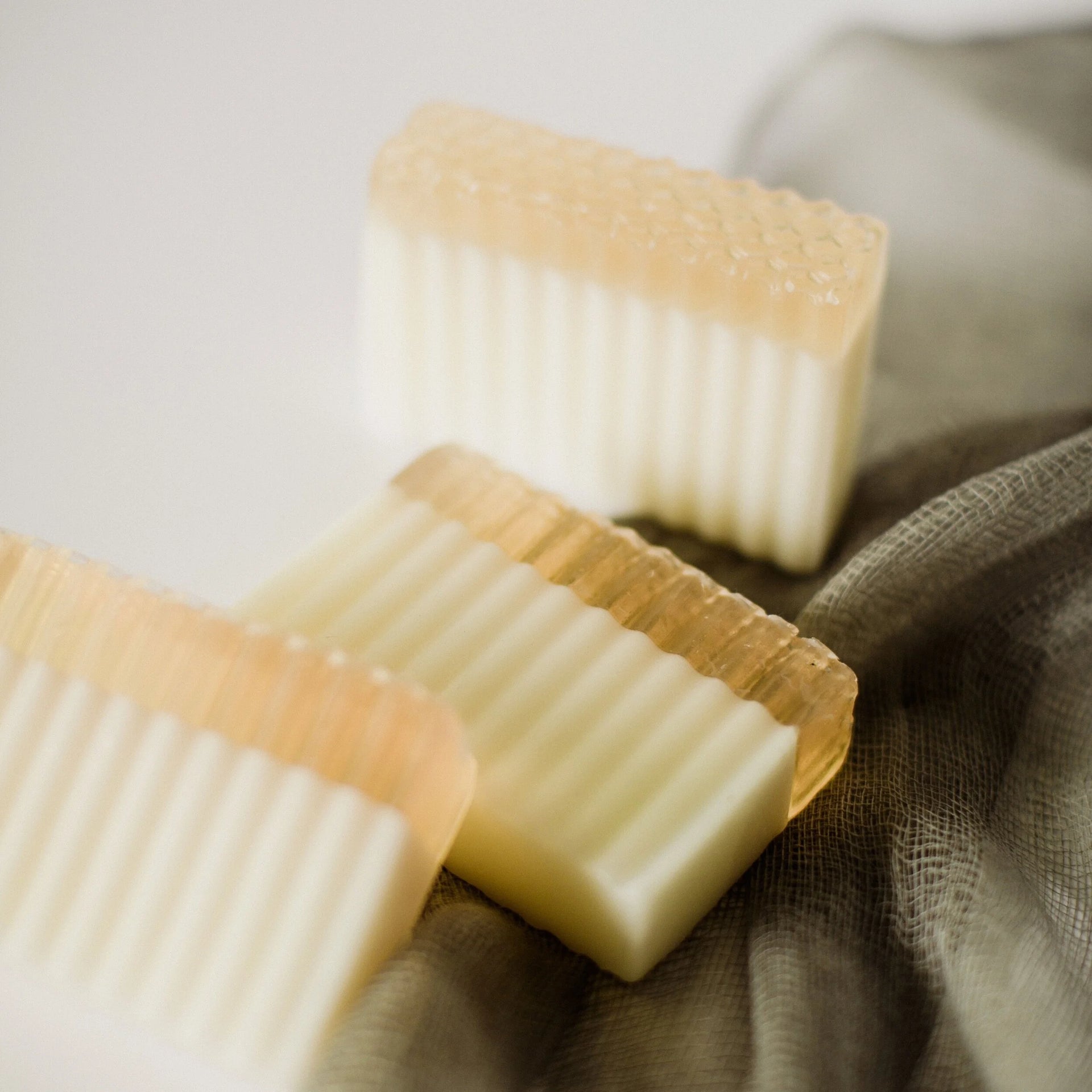 Ingredients: Goat’s milk soap base, honey soap base, milk + honey fragrance oil