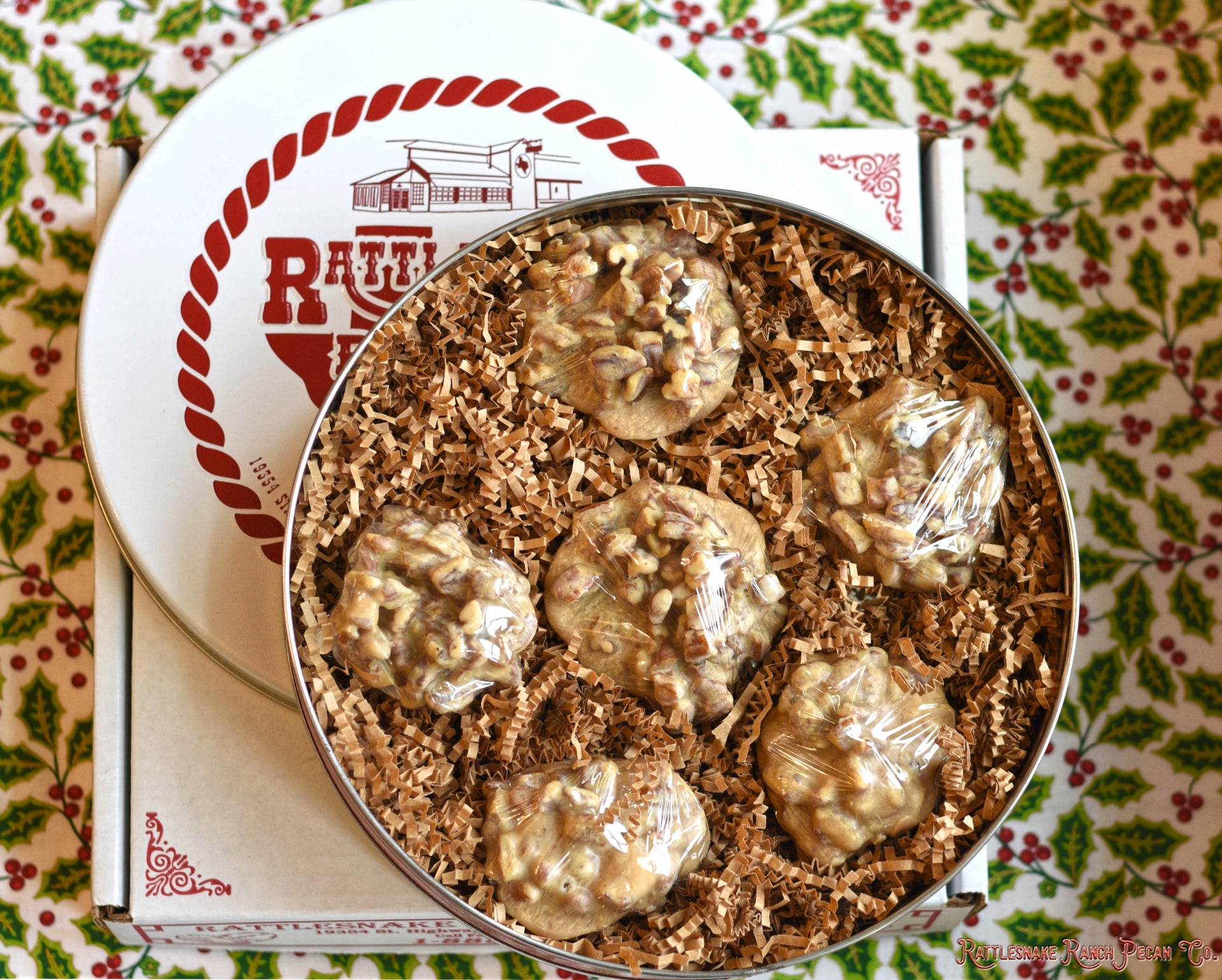 From quality pecans to the best cream and sugar, this signature sweet treat is made from only the finest ingredients! They are sold in a quantity of six praline patties, individually wrapped for freshness, and packed in a signature Rattlesnake Ranch Pecan Co. gift tin.