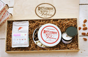 We're excited to introduce a new, curated gift box featuring our popular 12 oz. tri-chocolate pecan gift tin and products from two local, Texas Aggie-owned small businesses. Packaged in a rustic, branded wooden gift box, a handmade soy candle by Ember Collective and a 4 oz. bag of freshly roasted coffee from Polite Coffee Co. accompany our yummy pecans! The"Local" gift box is the perfect way to show your friends, family, or clients some locally-sourced love or appreciation!