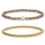 "Classic meets modern in the perfect bracelet pairing. The Beaded Duo Pearl Bracelet Set combines timeless elegance with everyday ease. Featuring a delicate strand of beads, a freshwater accent pearl and a coordinating 18k gold plated beaded bracelet, this duo adds a refined touch to any outfit. Both bracelets are designed with stretch bands for a comfortable, effortless fit. "